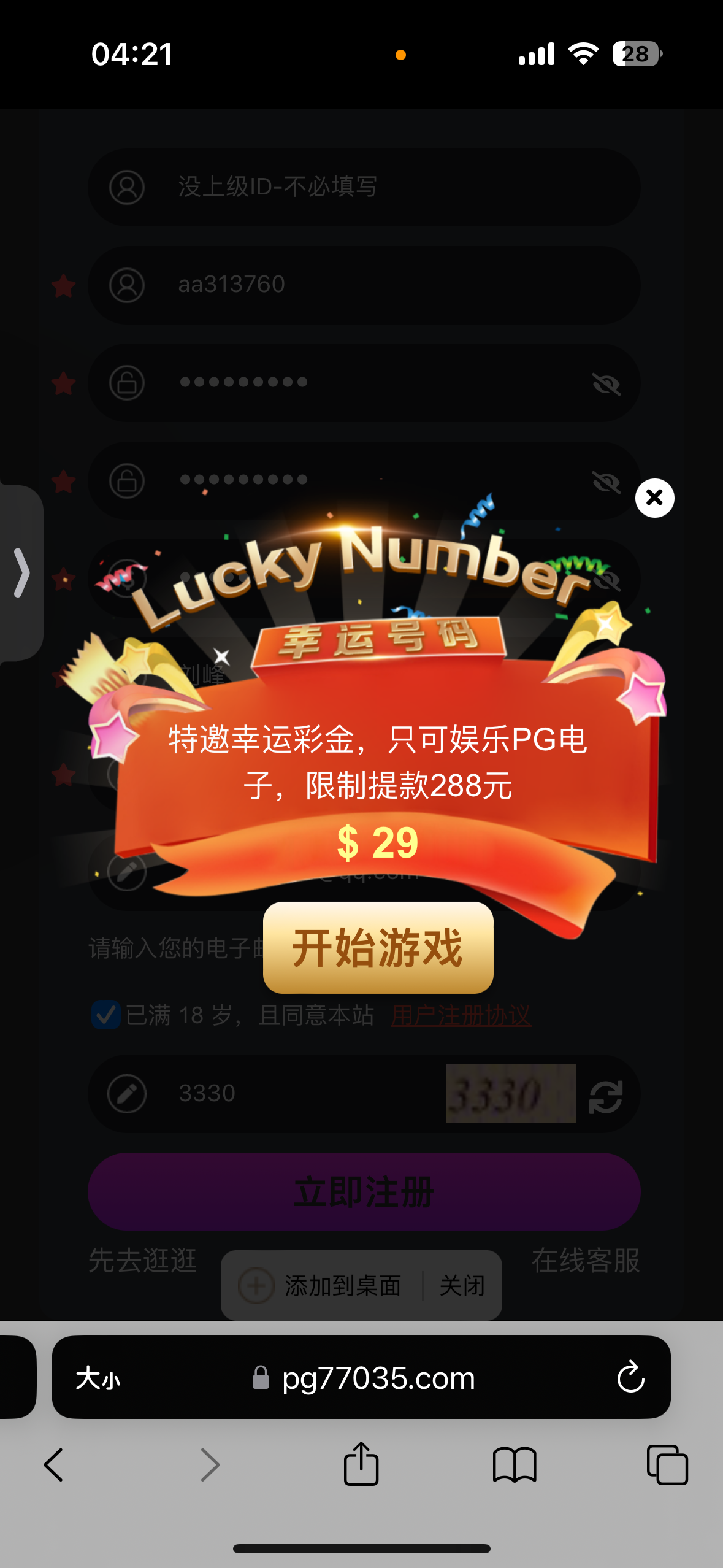 有一些特邀玩家有29彩金
