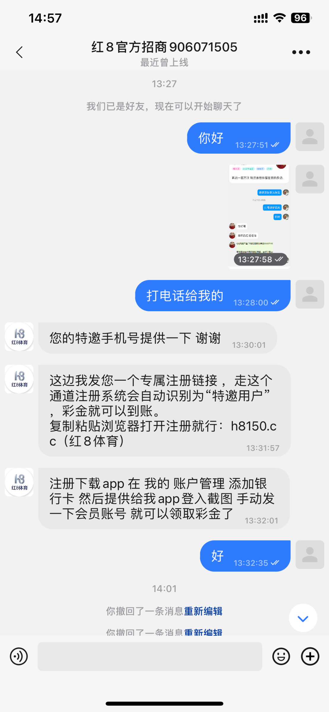打电话来的送了58,发过去一下子就到了,没打出来,多注意听电话呗,别充值白嫖即可。地址:h8150.cc