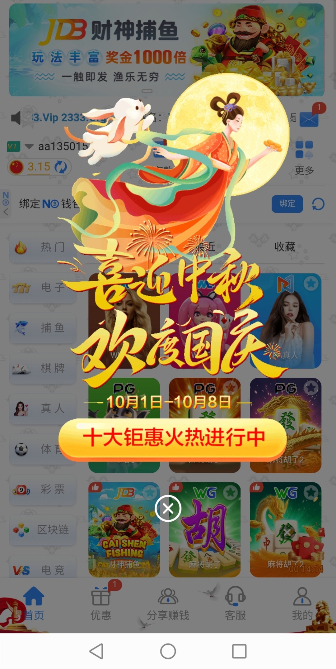 银河双节活动送彩金3一38,可以去试试