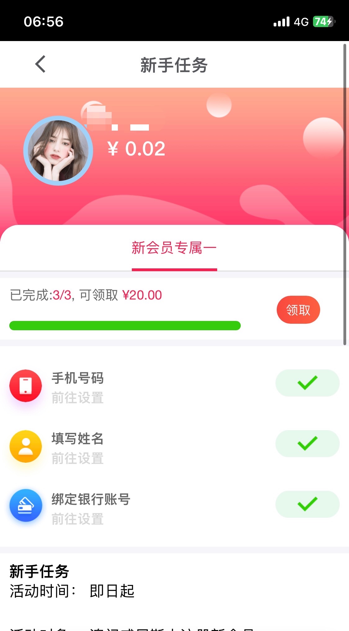 在奖励中心看领取